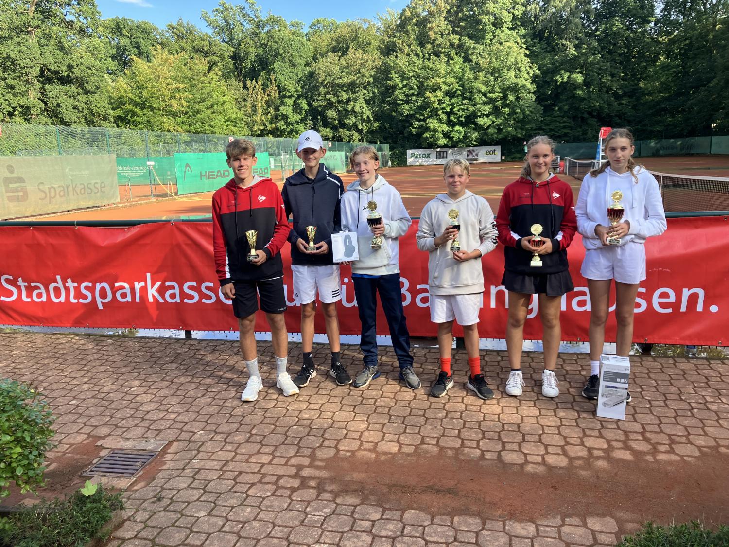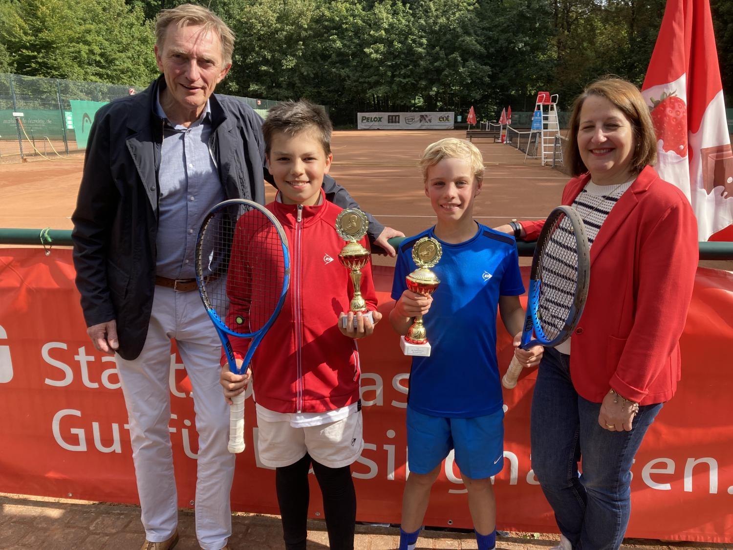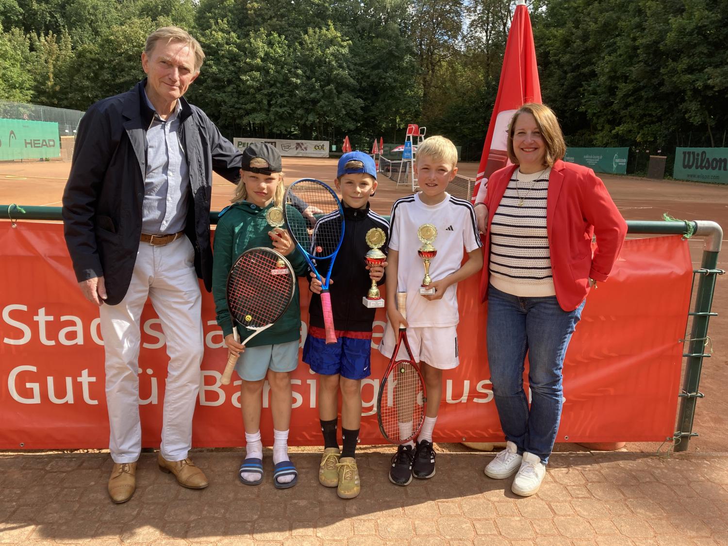 Zum 48. Mal veranstaltete der Tennis-Club Rot-Weiß Barsinghausen am 23./24.08.2025 das Jüngstenturnier um den Cup der Stadtsparkasse Barsinghausen. Die Turnierleiterin Gisela und der Oberschiedsrichter Jürgen Baumgarten konnten bei herrlichem Sonnenwetter 76 Teilnehmer im Alter von 8 und 9 Jahren aus ganz Norddeutschland begrüßen. Vier auszubildende Trainer und die hervorragende Clubgastronomie verhalfen dem Turnier zur Spitzenklasse. Jeden Tag wurden in allen Altersklassen bis zu drei K.O.- Runden gespielt. Da die fast komplette Orange- und Green-Cup - Rangliste angetreten war, gab es Supertennis zu sehen. Noah Schreibmüller und Isabella Ostermann waren die lokalen Clubteilnehmer. Die Jüngsten bestreiten 18 Turniere im Jahr und entwickeln ihre spielerischen Fähigkeiten. Bis auf eine Ausnahme setzten sich die Favoriten durch und erhielten vom 1. Vorsitzende Dr. Dirk Reischmann und der 2. Vorsitzenden Dusica Reich die Pokale und von der Stadtsparkasse Barsinghausen die kindgerechten Sachpreise. Gute Heimfahrt und ein Wiedersehen beim 75-Jahre-Jubiläum im August 2026.