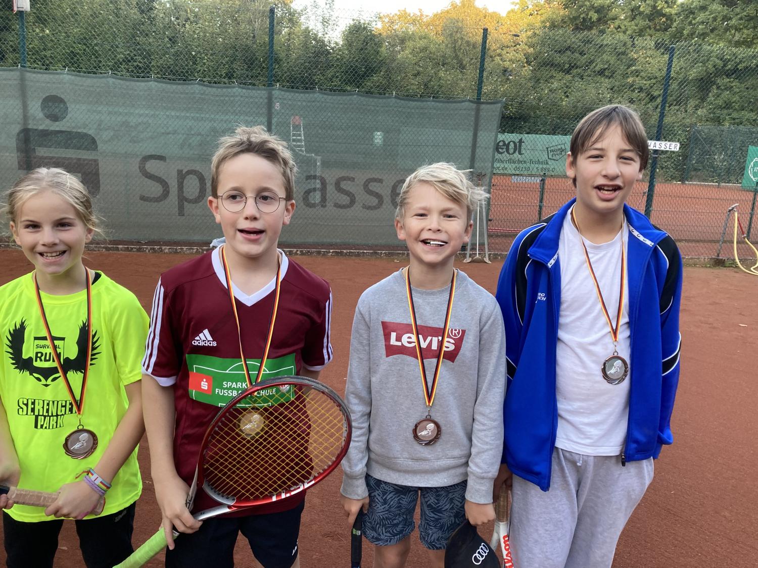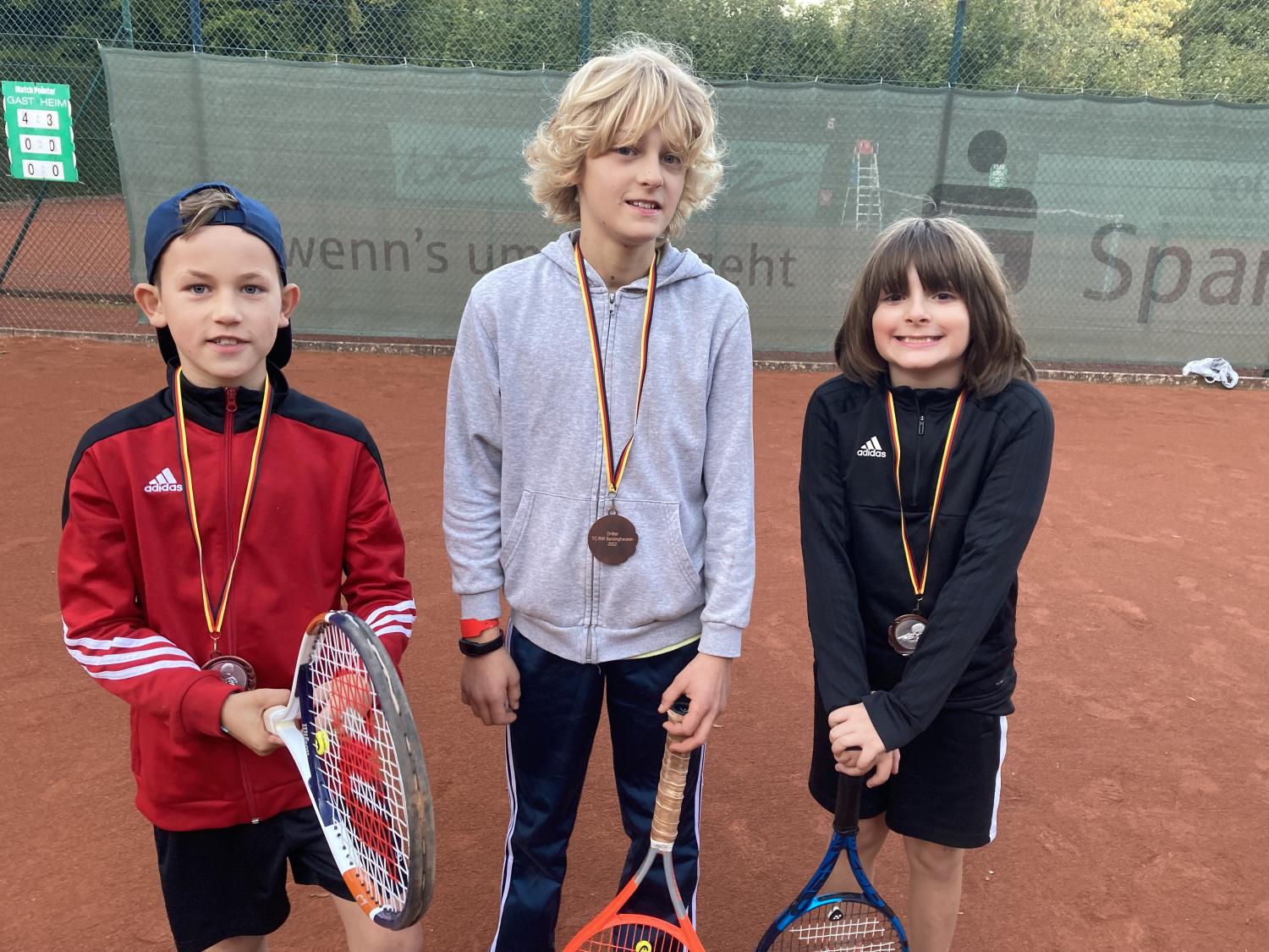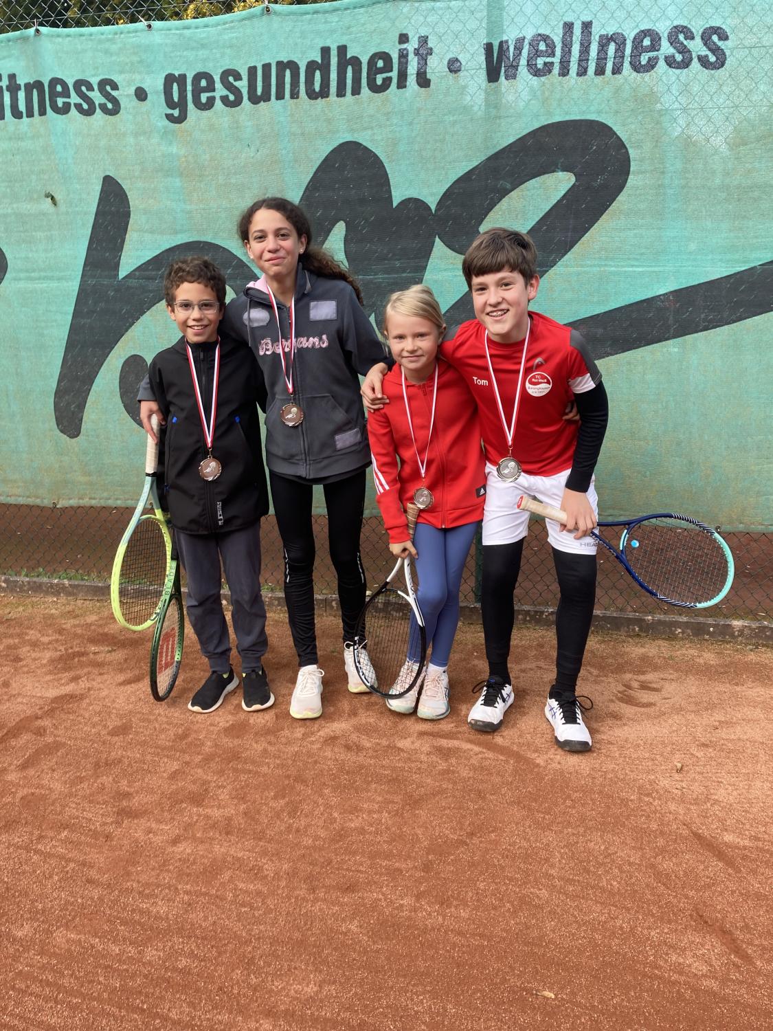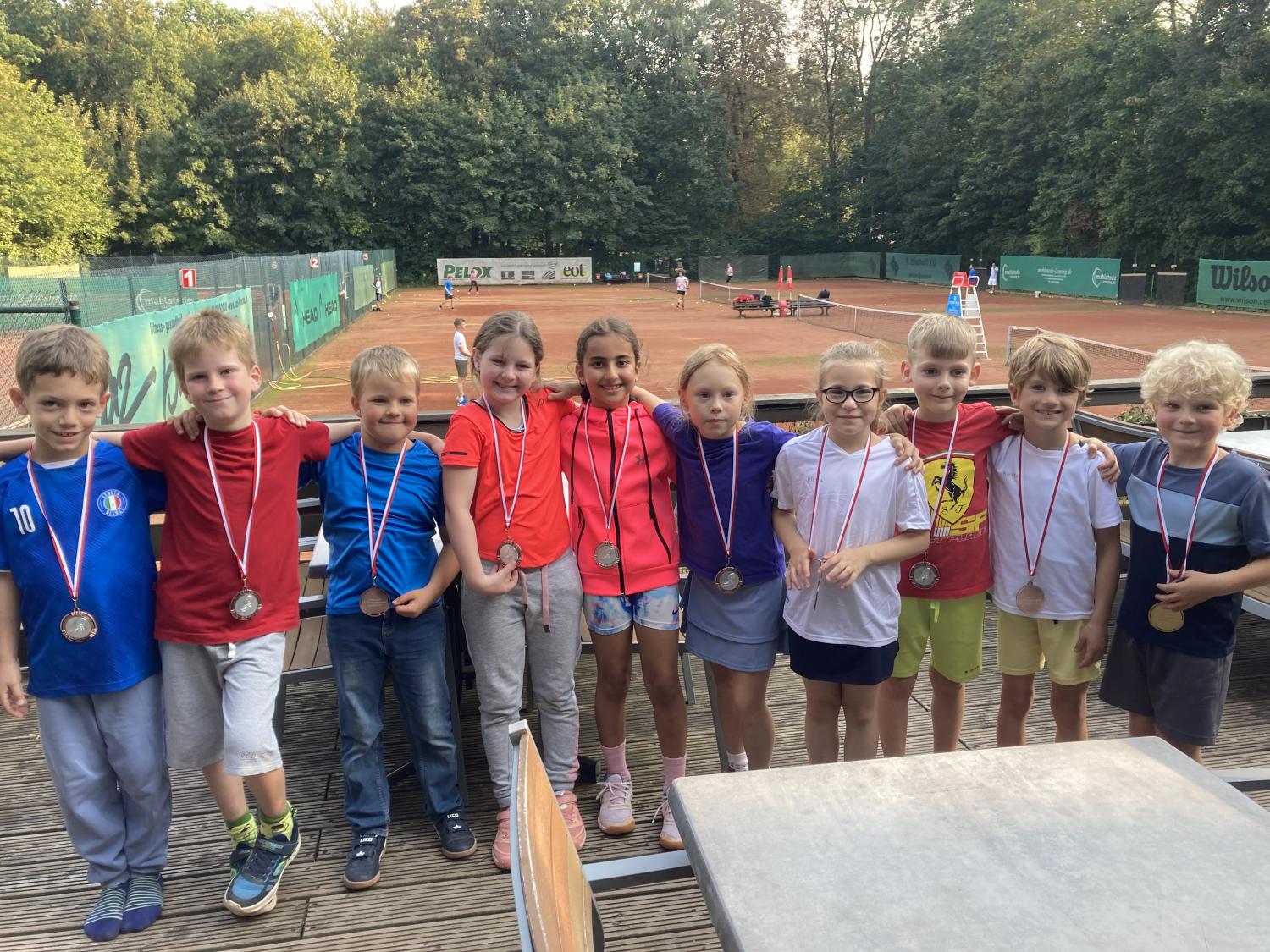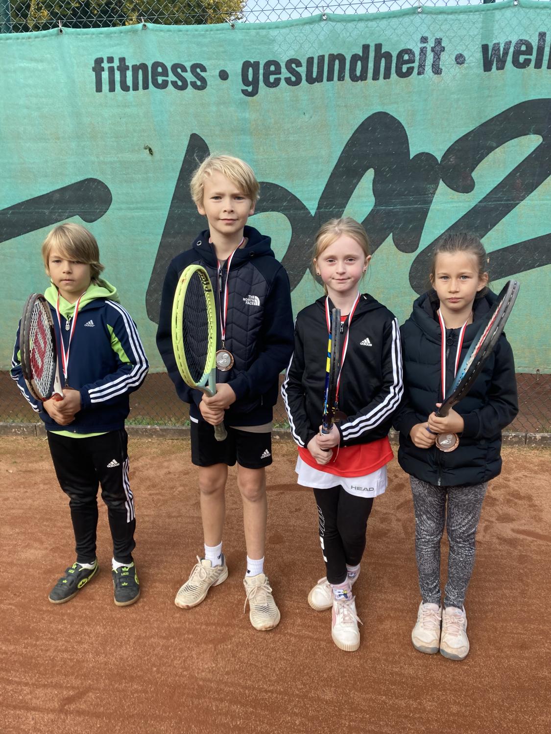 Bei herrlichem Sonnenwetter fand die Jüngsten-Clubmeisterschaft am 16.9.23 im Mehrkampf statt. Tenniseinzel, Tennisdoppel , Tennisfußball, Wikingerschach und Zielwurfübungen wurden nach einer Punktewertung absolviert. Teamsieger wurden mit 33 Punkten Antoine Krieger, Tom Schreeck, Mareike Busse und Henry Kraus. Knapp mit 29 Punkten geschlagen erzielten Ole Hasenjäger, Hanna Prisille und Henry Ostermann den zweiten Platz. Die Medaillen übergab der Jugendwart Jürgen Baumgarten und lud zu „Pommes rot-weiß“ ein.