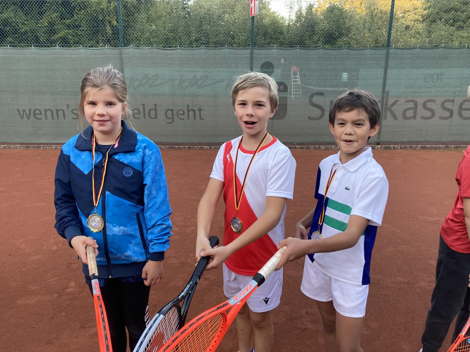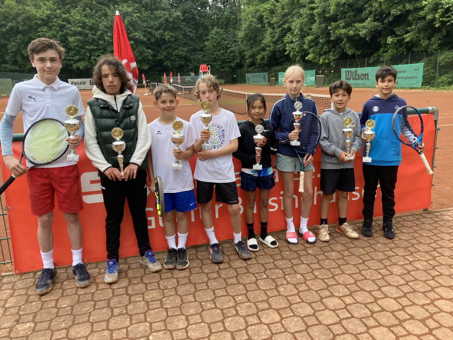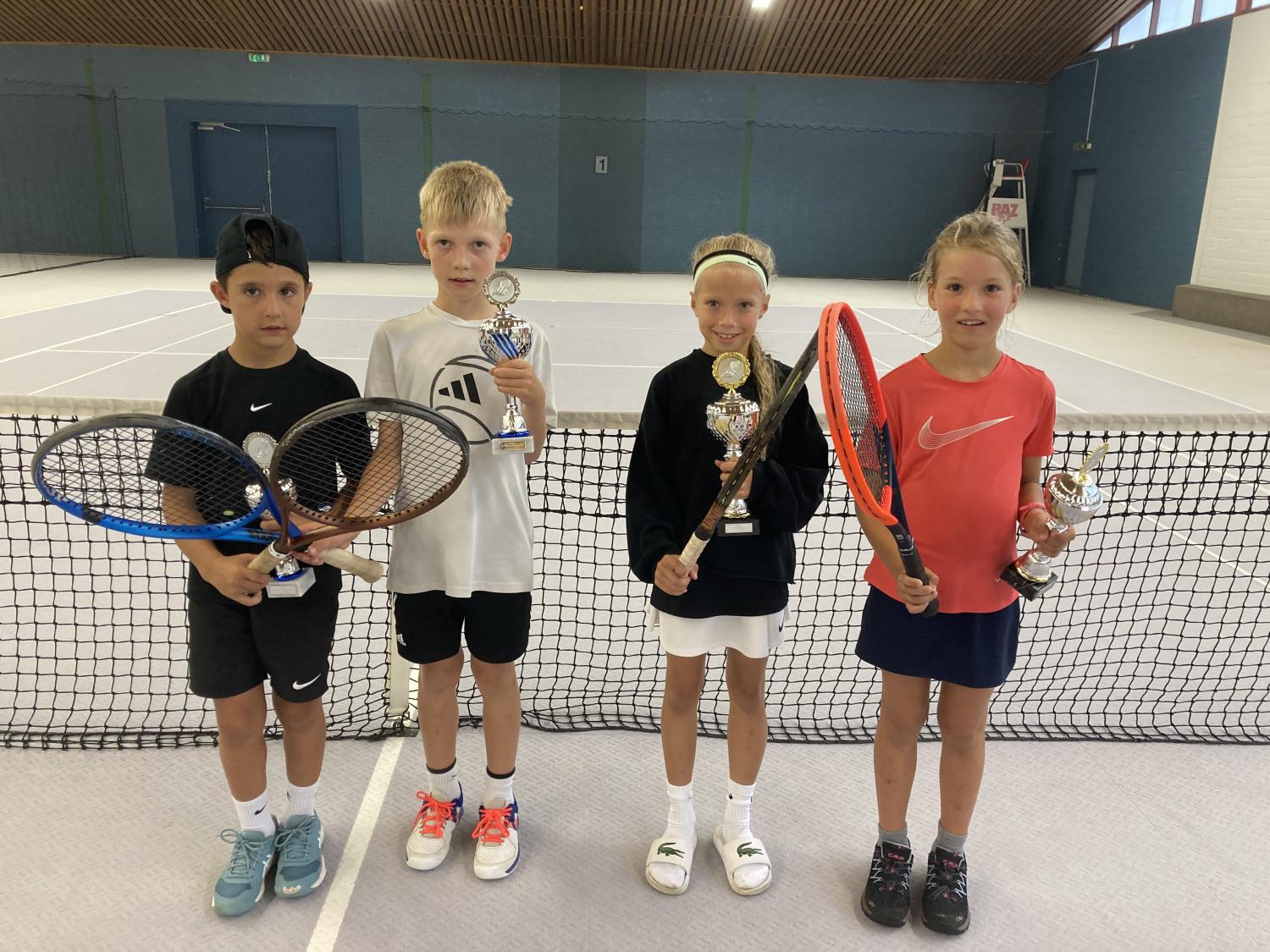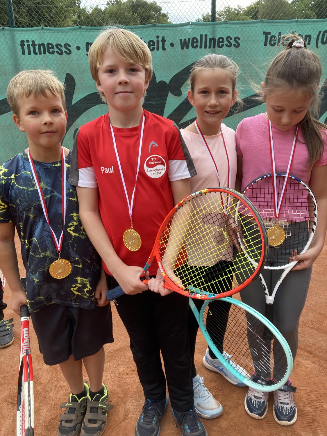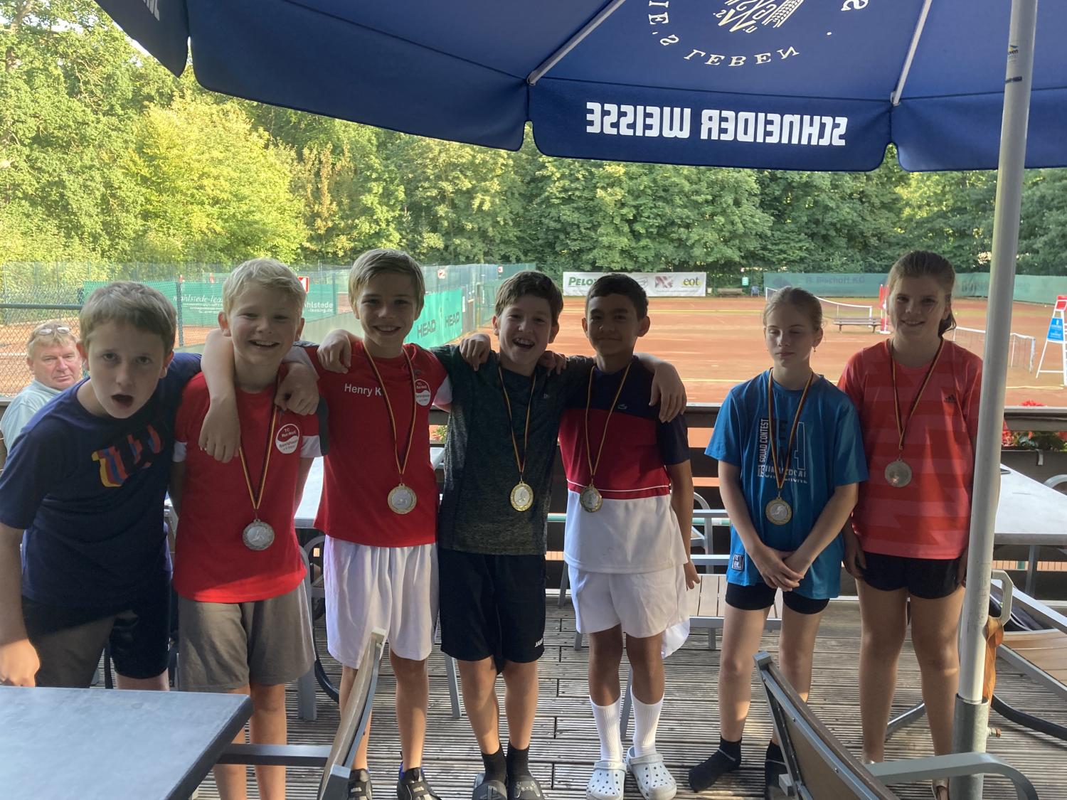 Bei herrlichem Sonnenwetter fand die Jüngsten-Clubmeisterschaft am 16.9.23 im Mehrkampf statt. Tenniseinzel, Tennisdoppel , Tennisfußball, Wikingerschach und Zielwurfübungen wurden nach einer Punktewertung absolviert. Teamsieger wurden mit 33 Punkten Antoine Krieger, Tom Schreeck, Mareike Busse und Henry Kraus. Knapp mit 29 Punkten geschlagen erzielten Ole Hasenjäger, Hanna Prisille und Henry Ostermann den zweiten Platz. Die Medaillen übergab der Jugendwart Jürgen Baumgarten und lud zu „Pommes rot-weiß“ ein.