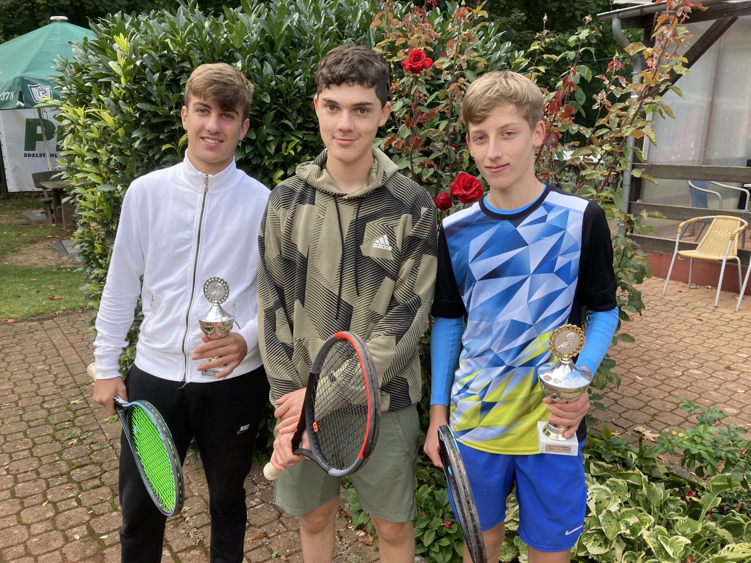 A-Junioren: Sieger Vincent Matthies ( rechts ) und dem Zweiten, Niklas Richter (links) mit Gian Luca Sperber (mittig).