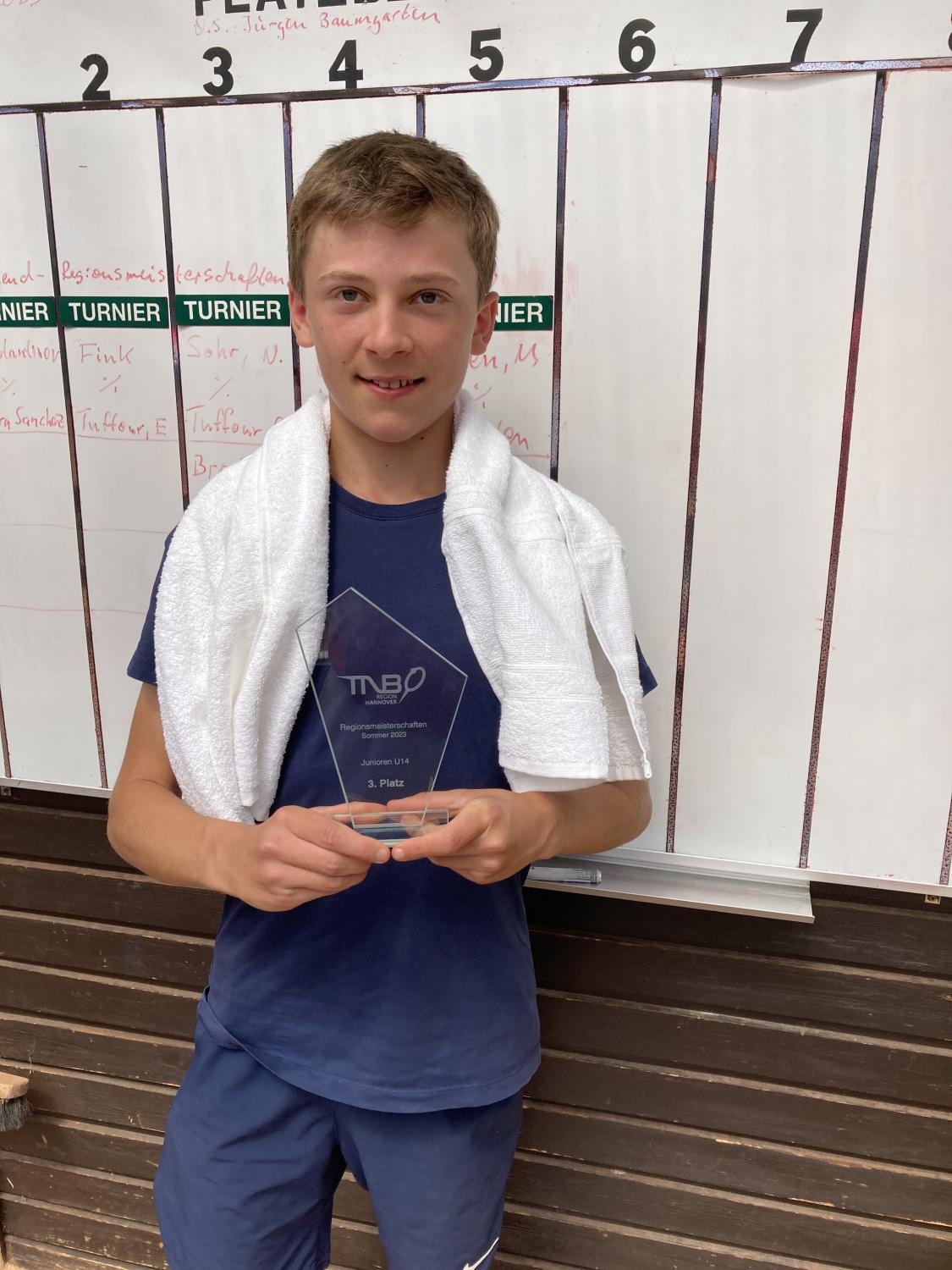 Bastian Fink vom TC RW Barsinghausen wird Dritter der Regionsmeisterschaften 2023.